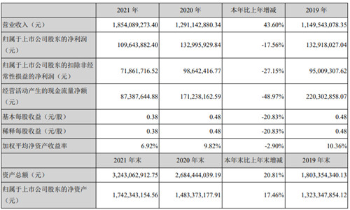 4月21日,明阳电路披露了2021年年度报告,报告期内,公司订单处于历史高位、产能相对饱满,全年实现营业收入18.54亿元,较上年同期增长43.60%,归属于上市公司股东的净利润为1.10亿元,较上年同期减少17.56%。