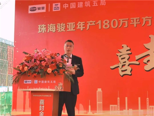 施工单位中建五局三公司副总经理、华南区域总经理陈雷先生表示:“珠海骏亚产业园项目是中建五局三公司在珠海与高新技术企业的首次合作,对三公司而言具有重大的战略意义。三公司将再接再厉,为骏亚产业园二期工程开好头、布好局,与各相关方携手为构建‘大斗门’贡献力量。”