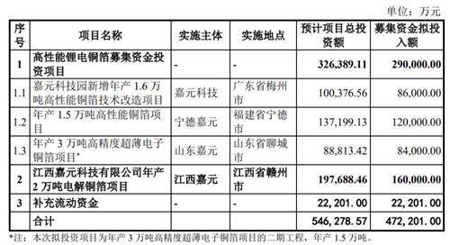 嘉元科技拟募资47.22亿元,用于铜箔等项目