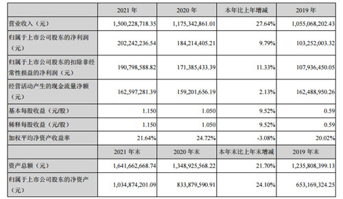 近日,奕东电子(301123)披露上市后的首份年报,公司2021年度实现营业收入15.00亿元,同比增长27.64%;实现归母净利润2.02亿元,同比增长9.79%。