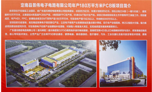 该项目由广东通元精密电路有限公司投资建设,位于定南县工业园区,总投资25亿元,年度计划投资5亿元。项目占地224亩(一期100亩),建筑面积10万㎡,主要建设4条高端PCB生产线、4条高端FPC生产线、65条SMT贴片生产线,项目已完成招投标及土方平整等开工准备工作。项目建成后,年产HDI、FPC、软硬结合板及SMT系列产品180万㎡。