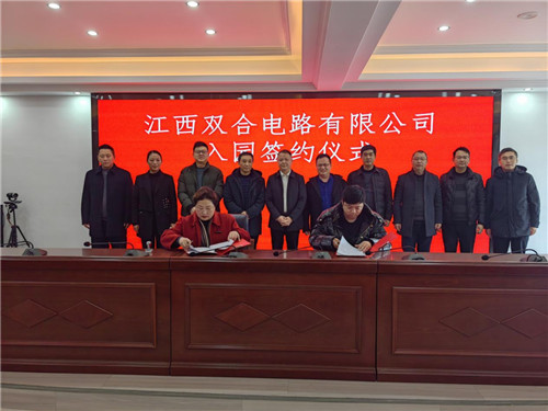 2023年1月6日,江西双合电路有限公司入园签约仪式在铅山县工业园区举行。公司是一家经营高精密印刷电路板加工、销售的企业。项目总投资2.5亿元,其中固定资产投资1.5亿元,建设年产100万平方米高精密印刷电路板项目。