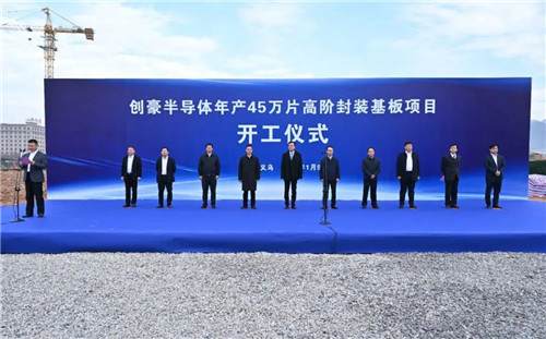 2023年1月9日上午,浙江创豪半导体有限公司年产45万片高阶封装基板项目举行开工仪式。