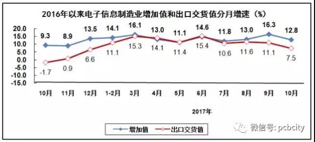 电子元件行业生产保持平稳增长,出口增速逐月走高。1-10月,生产电子元件35802亿只,同比增长18%。出口交货值同比增长16.0%,其中10月份增长22.0%。