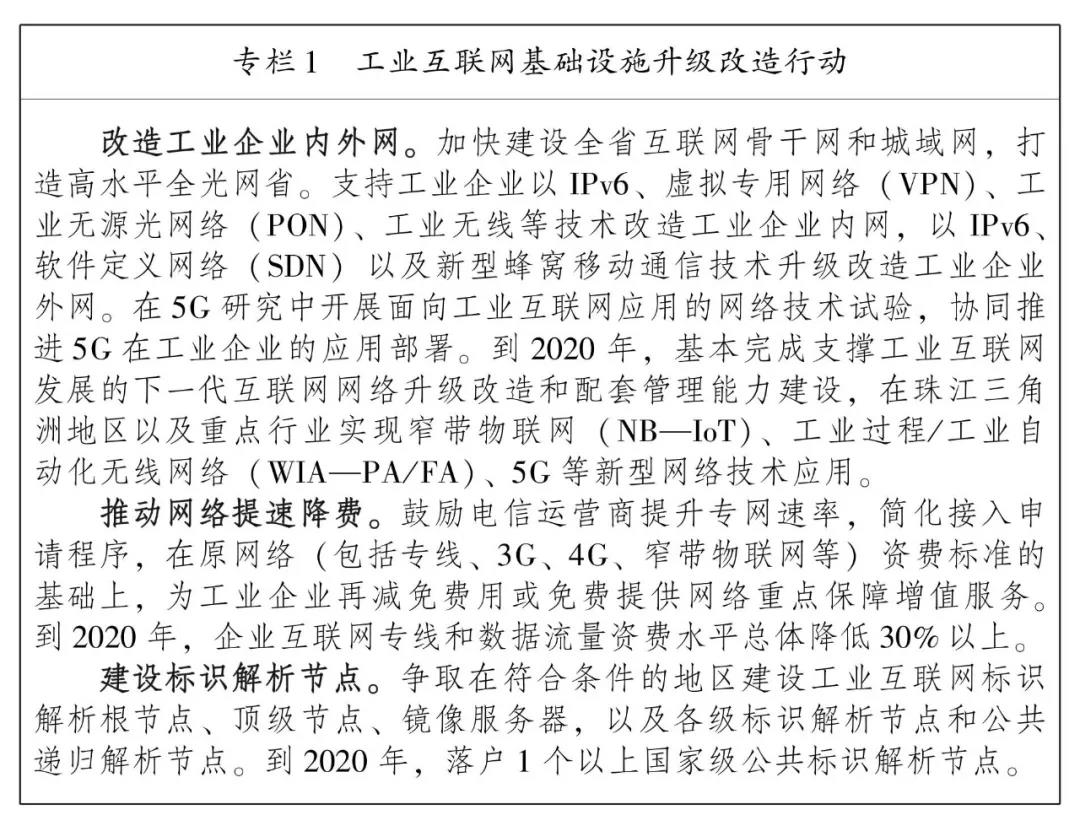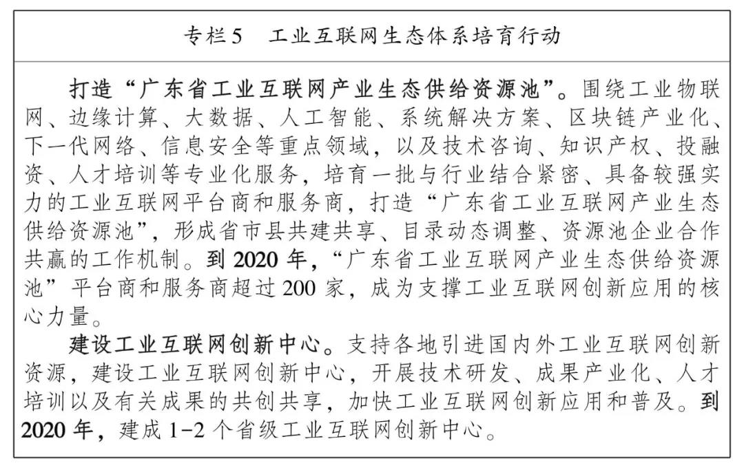到2020年,在全国率先建成完善的工业互联网网络基础设施和产业体系。