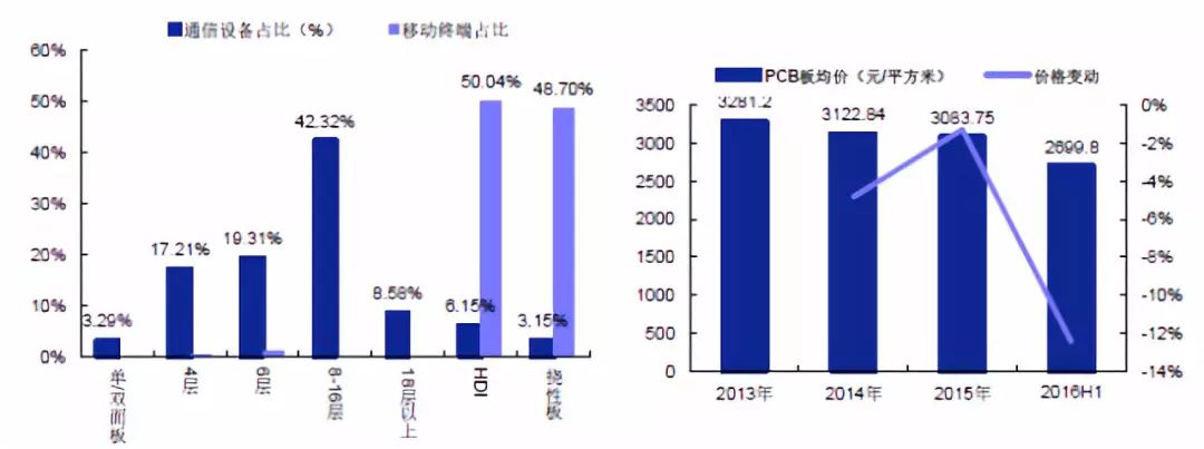 各类PCB在通信设备与移动终端领域应用占比