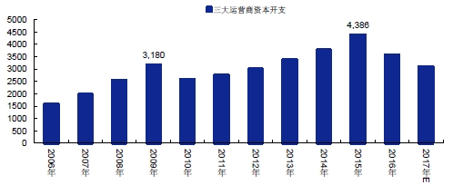 2006-2017E三大运营商年度资本支出(亿元)