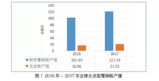 2017年无卤板材与半固化片(注意:只包括无卤FR4,不包括无卤特殊覆铜板)市场21.02亿美元,与2016年无卤板材与半固化片的16.86亿美元相比,年增长率24.7%。