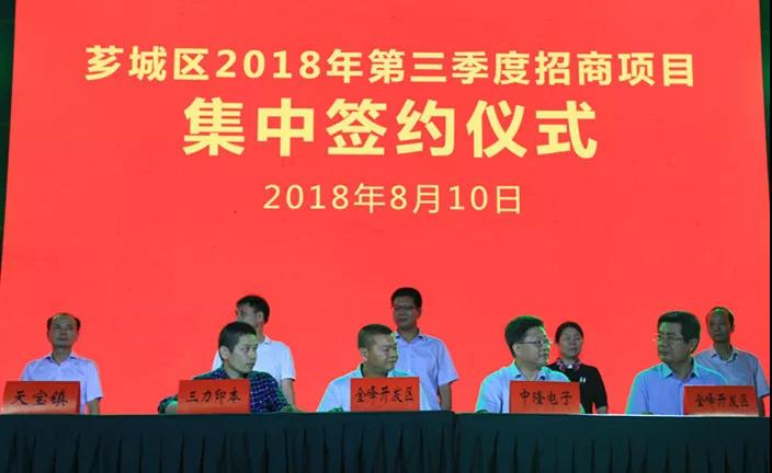 此次共签约12个项目,总投资44.6亿元;其中金峰签约项目2个,总投资10亿元,分别是中隆电子生产项目和三力印本新能源摩托车生产研发项目。