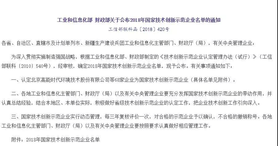 为深入贯彻实施制造强国战略,根据工业和信息化部、财政部制定的《技术创新示范企业认定管理办法(试行)》(工信部联科〔2010〕540号),经审核,确定68家企业为2018年国家技术创新示范企业,其中,生益科技光荣上榜。