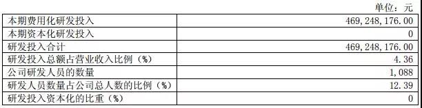 2017年,生益科技研发投入4.69亿,占营业收入的4.36%。详情如下表所示: