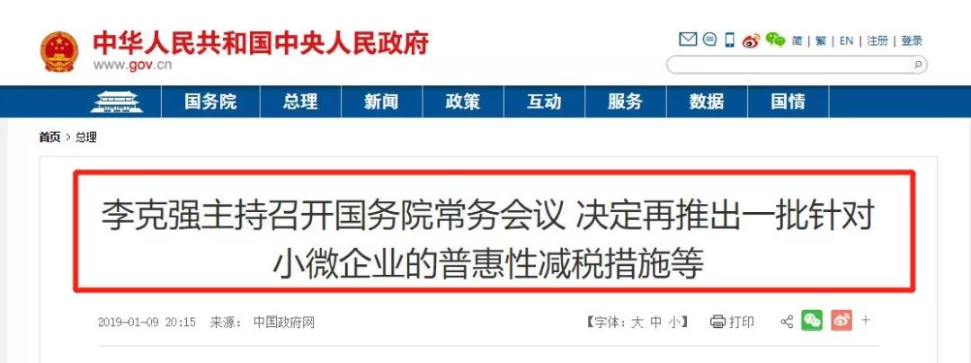 1月15日,国务院新闻办的新闻发布会上,财政部部长助理许宏才表示,小微企业标准大大放宽,2019年还要有更大规模的减税和更为明显的降费!