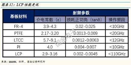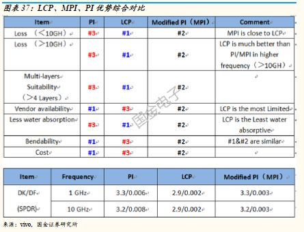 5G时代m-PI和LCP会共存,中低频采用m-PI,高频采用LCP。由于LCP短期由于价格较贵,而m-PI在中低频段具有性价比优势,因此国金电子认为5G时代,中低频将采用m-PI,高频将采用LCP,二者将会共存。