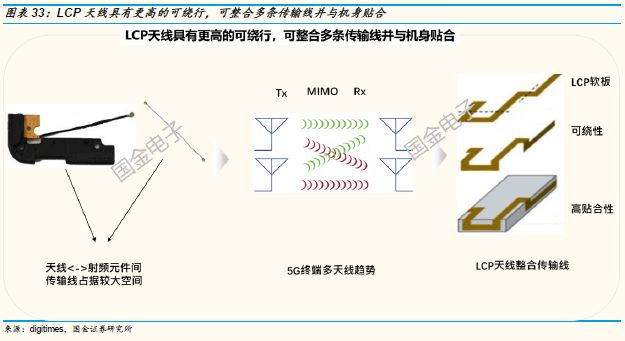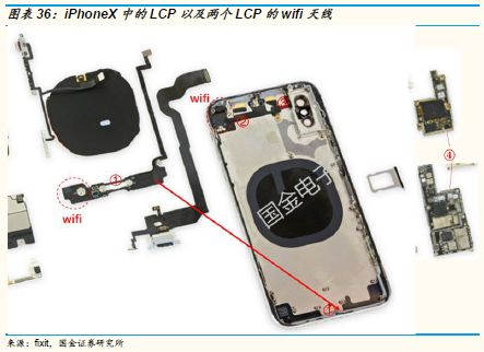 (2)射频传输线和天线的集成方案。iPhone X开始采用的LCP天线就是此方案。