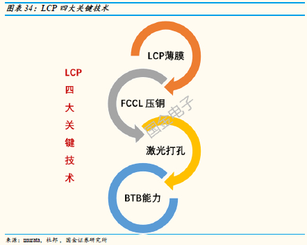 (3)激光打孔:LCP软板层数很多,钻孔很难,目前村田用的埋容埋感技术,嘉联益用的激光打孔(设备提供:ESIO;激光打孔设备也是增量,传统FPC用的机械打孔);