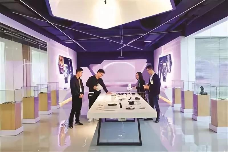 随后,记者来到一个半开放、由酷炫图形组成的空间,金百泽人称之为“智慧世界”。闪烁着夺目灯光的“火球”,配以墙上那些既像线路图又像音符的星点,让人仿佛置身深邃无边的银河系,无穷无尽,意境深远。武守坤说,这个空间有两层寓意:一是智慧像银河一样高远,科学探索深邃无边;二是勉励金百泽人以“芯心互联”为使命,服务客户的电子产品研发,赋能人类追求美好生活。