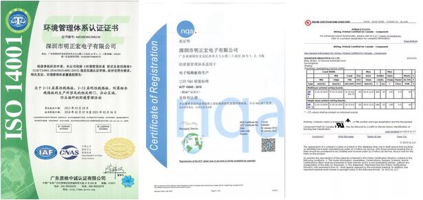 明正宏线路板集团建立于2003年9月,是一家专业生产单、双面和多层线路板的生产厂家。工厂已经通过了ISO14001、CQC、IATF16949、CQC和UL/CUL认证。
