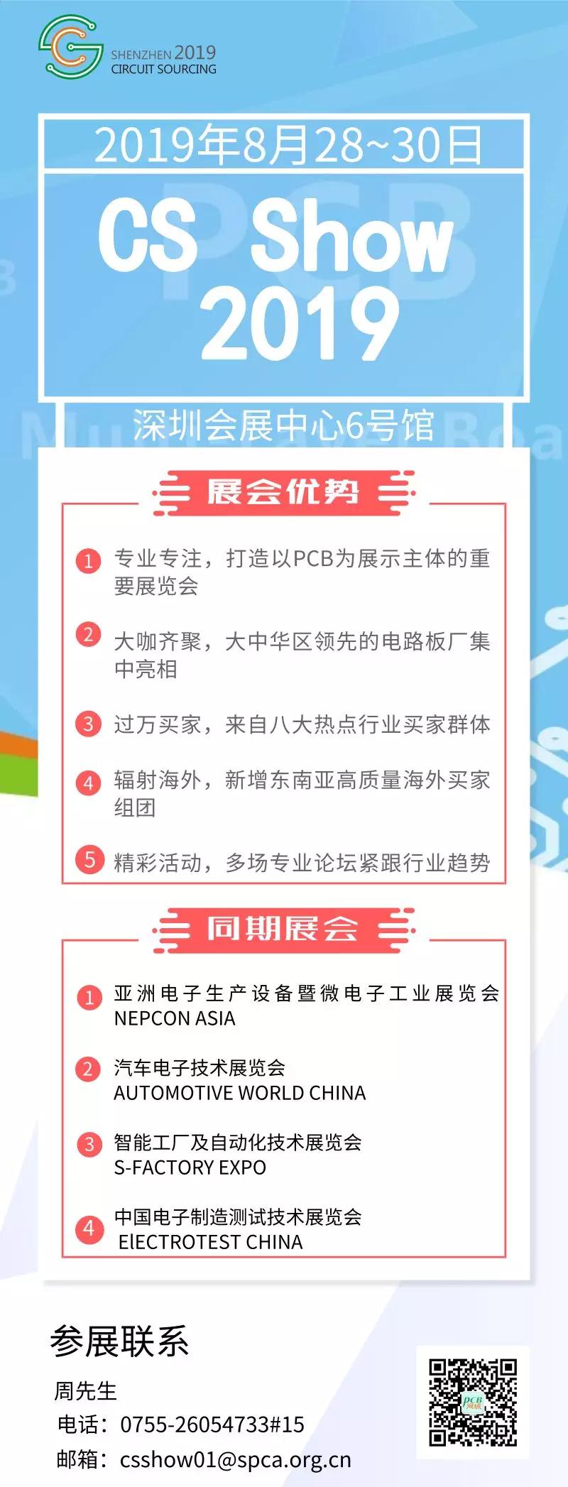 2019年8月28~30日,由深圳市线路板行业协会、台湾电路板协会、中国国际贸易促进委员会、励展博览集团联手打造的第六届深圳国际电路板采购展览会(CS Show 2019)将于深圳会展中心精彩上演。作为全球唯一以电路板为展示主题的行业盛会,国内领先PCB企业将齐聚一堂,展示行业前沿技术。明正宏(展位号:6E40)邀您观展,一览行业前沿技术,把握发展命脉。