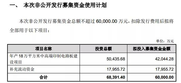 传艺科技(002866)登陆资本市场以来动作频频。8月8日,公司发布公告称,拟非公开发行不超过4955.51万股(即发行前总股本的20%),募集资金不超过6亿元,拟用于年产18万平方米中高端印制电路板建设项目,以及补充流动资金。