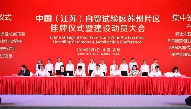 9月1日上午,中国(江苏)自贸试验区苏州片区挂牌仪式暨建设动员大会在苏州工业园区举行。省委常委、市委书记周乃翔,市委副书记、市长李亚平共同为江苏自贸试验区苏州片区挂牌。