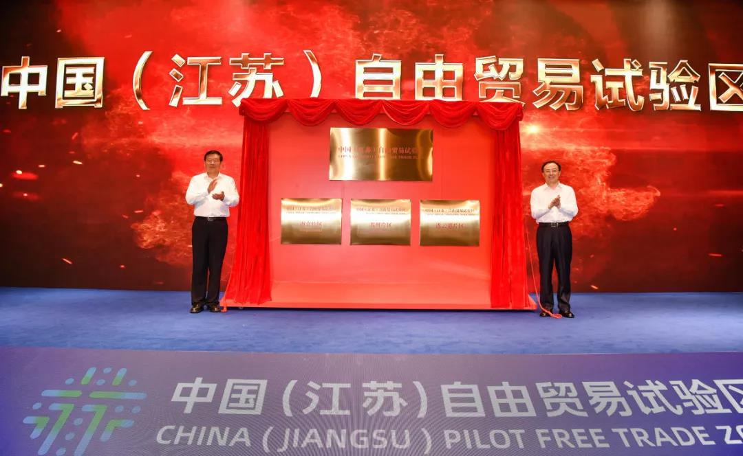 8月30日上午,中国(江苏)自由贸易试验区揭牌仪式在南京江北新区举行。江苏省委书记娄勤俭、省长吴政隆共同为中国(江苏)自由贸易试验区及南京片区、苏州片区、连云港片区揭牌。娄勤俭在揭牌仪式上讲话,吴政隆宣读了国务院关于同意设立中国(江苏)自由贸易试验区的批复。