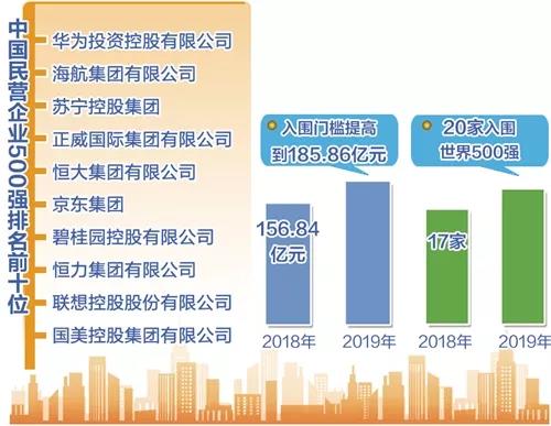 据了解,“中国民营企业500强”是在全国工商联上规模民营企业调研的基础上,按照年营业收入总额降序排列产生,非“评选”产生。近年来,参加调研的上规模企业持续增加,相较于去年,2019年度参与的企业数量增加了772家,有5384家企业参加调研并通过数据审核。本次500强上榜门槛为185.85亿。