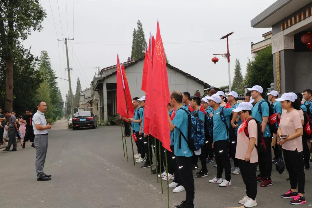 清晨5时30分,参加人员早已统一着装,并于公司南门列队集合完毕,随后登上前往黄茅洲镇的大巴。历经三个小时的车程颠簸,终于到达目的地,随后由各小组成员一起商榷队名,并将队名及个人签名写于队旗之上。