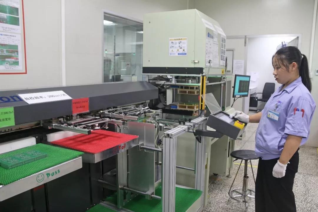 以前人工操作时,在外观检查工序上,工人将板子叠成一叠,一块一块看,除了所需时间较长外,这一触摸、一碰撞、一换手,容易造成电路板的刮伤。在曝光工序上,手动就更费时间成本了,需要3名工人对准材料,肉眼排查,通常一块板要几十秒才能查完。