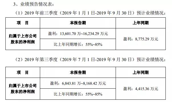 10月7日晚,弘信电子(300657)发布公告称,预计2019年前三季度归母净利润为1.36亿元~1.62亿元,同比增长55%~85%。2019年第三季度,盈利6843.81万~8168.42万元,比上年同期增长:55%~85%。