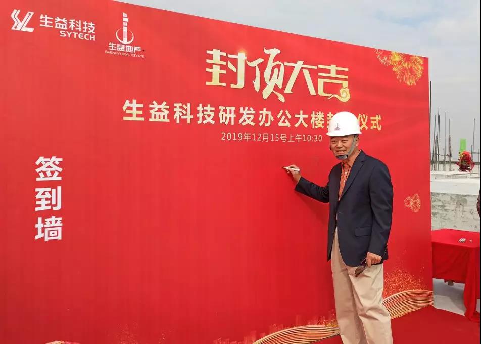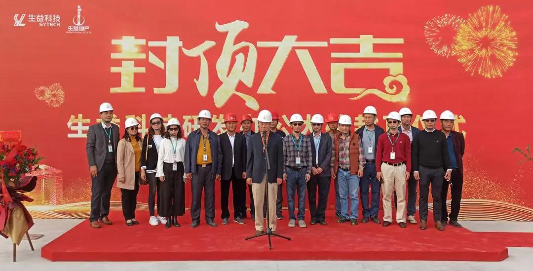 2019年12月15日上午,生益科技研发办公大楼举行封顶仪式。广东生益董事长刘述峰、总工程师曾耀德、总会计师何自强、营销总监曾红慧、董事会秘书唐芙云,生益地产总经理曾旭棠,广东生益、生益地产相关管理人员,工程建设相关方代表共同参加封顶仪式。