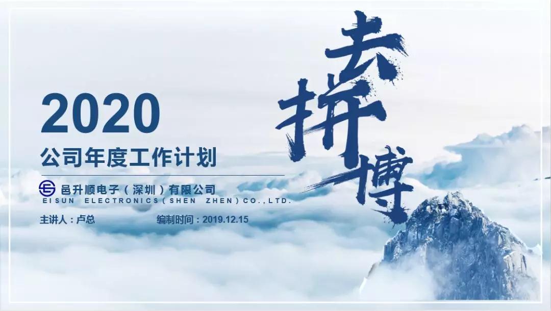 2019年12月25日,邑升顺2019年终总结暨2020年计划会议圆满结束,公司各部门负责人以及工序主管、工程师、组长参会,总经理卢杰出席并主持会议。