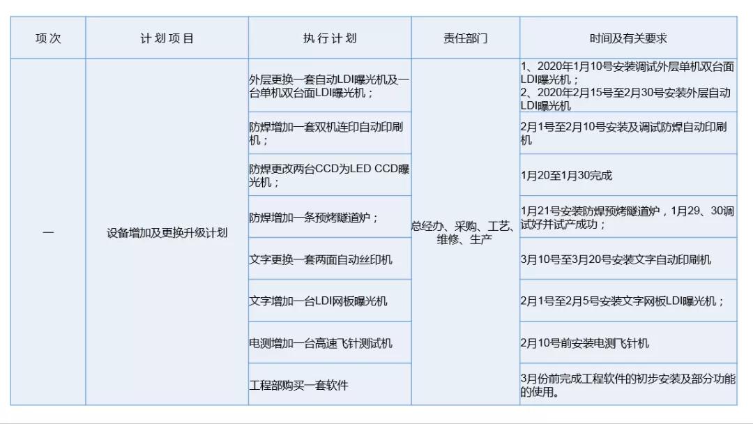 在2020年年度计划的展望与讲解中,卢总对目前各部门、各工序存在的问题进行了逐一的剖析,并结合2020年年度计划的实现,提出了大家需要开展落实的应对改善措施。2020年是执行力、操作技能、检验技能夯实的一年,是全面品质稳定、产能提升的一年,公司将在新的一年中,加大对自动化设备的升级投入,从元月份至三月份,完成外层LDI自动曝光机、防焊、文字自动丝印机、文字网板LDI、防焊隧道式烘箱的新设备投入。以此同时,我们还将增强企业的外训与内训,提升专业指导,让大家的能力更加专业、工作效能更上一层楼。