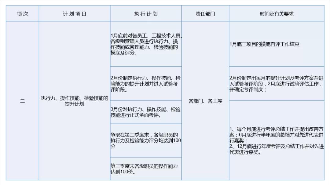Ø 做好各级别员工的执行力、操作能力或管理能力、检验能力的评定及考评工作。