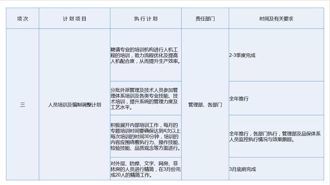 会议总结回顾了2019年产量、销售、各类成本、准交率、订单尾数率、各项品质目标、人员管理目标的达成情况。并制定了2020年的各项工作目标,及各项需要落实的工作计划。