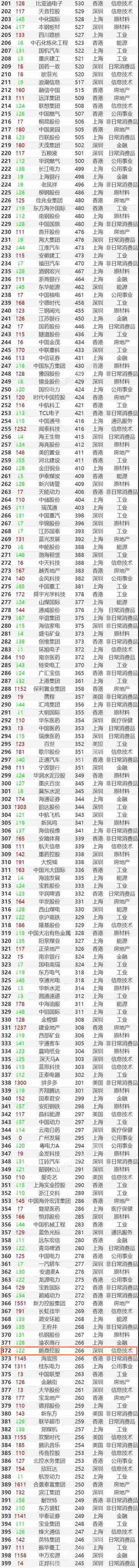 (说明:本榜单统计上海、深圳、香港、美国上市的主要经营活动在内地的中国公司,数据截至2020年4月30日,不包括尚未发布2019年业绩的公司,部分公司如阿里巴巴财年与日历年不一致,以日历年数据为准。)