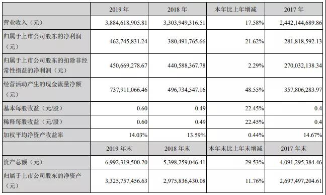 4月23日晚间,胜宏科技(300476)披露2019年年度报告,公司去年实现营业收入38.85亿元,同比增长17.58%;归母净利润4.63亿元,同比增长21.62%;基本每股收益0.60元。公司拟向全体股东每10股派发现金红利1.9元(含税)。