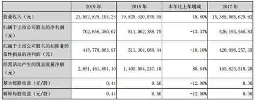 东山精密于2020年4月23日披露年报,公司2019年实现营业总收入235.5亿,同比增长18.8%;实现归母净利润7亿,同比下降13.4%;每股收益为0.44元。报告期内,公司毛利率为16.3%,基本维持上年水平,净利率为3%,同比降低1.1个百分点。