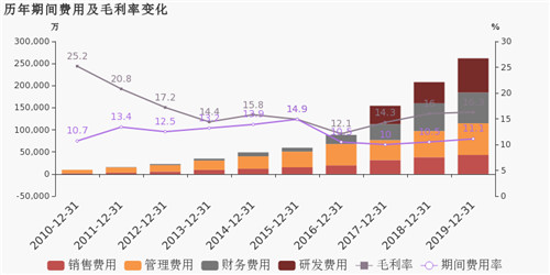 公司2019年营业成本197.1亿,同比增长18.3%,低于营业收入18.8%的增速,导致毛利率上升0.4%。期间费用率为11.1%,较上年升高0.6个百分点。经营性现金流大幅上升88.6%至26.5亿。公司研发投入大幅增加,相比去年同期增长62.4%达到7.7亿。研发投入全部费用化,不作资本化处理。