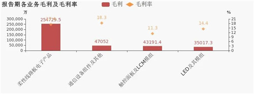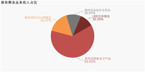 从业务结构来看,“柔性线路板电子产品”是企业营业收入的主要来源。具体而言,“柔性线路板电子产品”营业收入为146.6亿,营收占比为62.41%,毛利率为17.4%。