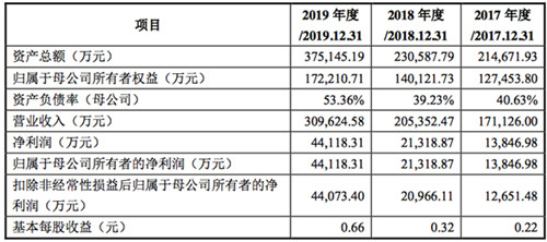 据生益电子招股书披露,2017年-2019年,公司实现营收分别为17.11亿元、20.54亿元、30.96亿元;净利润为1.38亿元、2.13亿元、4.41亿元;扣非净利润为1.27亿元、2.10亿元、4.41亿元。