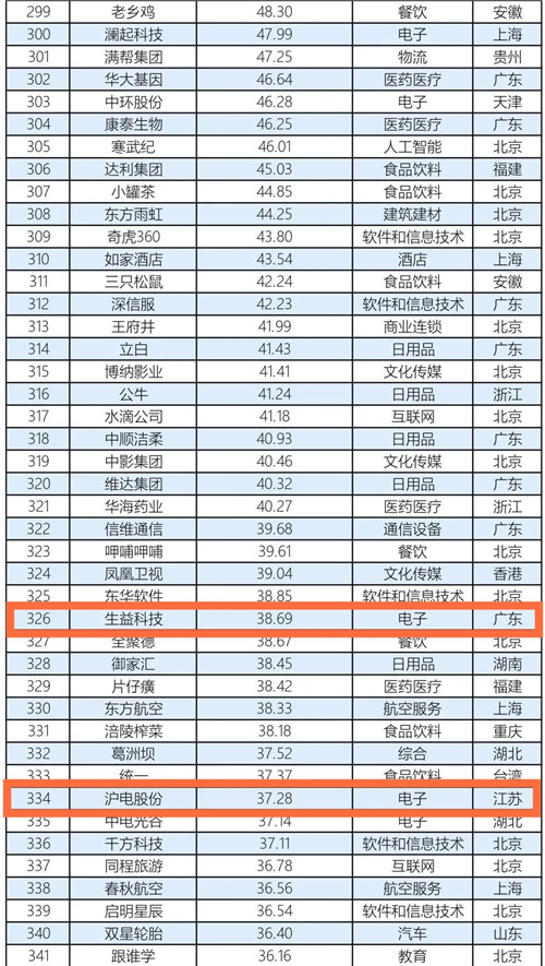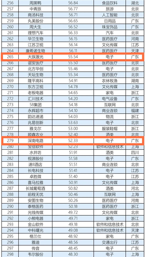 值得关注的是,PCB行业企业鹏鼎控股以品牌价值66.64亿列第228位;大族激光以品牌价值55.54亿列第265位;深南电路以品牌价值52.33亿列第279位;生益科技以品牌价值38.29亿列第326位;沪电股份以品牌价值37.28亿列第334位。