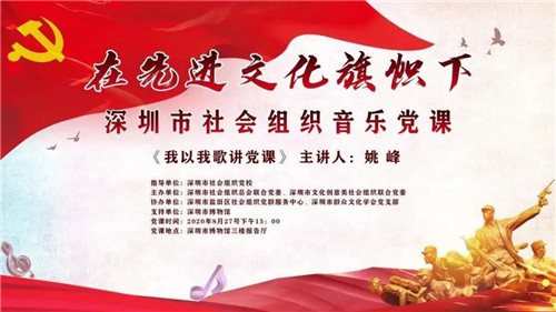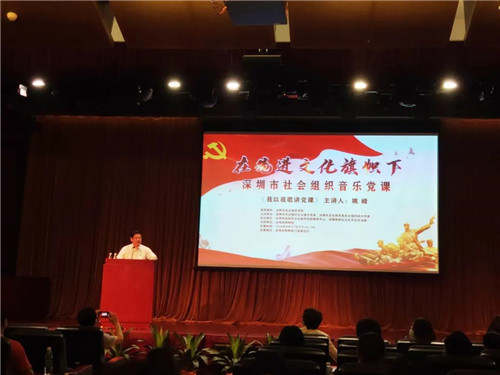 主讲人姚峰是著名作曲家、中国音协理事、深圳市文化艺术专家联谊会会长,他带来“在先进文化旗帜下”——深圳市社会组织音乐党课《我以我歌讲党课》,以音乐的视角,讲述党的奋斗历程,用主旋律艺术激励党员。