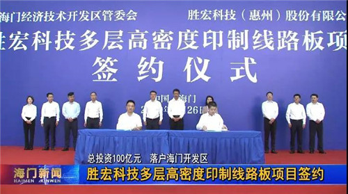 胜宏科技专业从事高精密度印制线路板的研发、生产和销售,产品广泛应用于计算机、航空航天、汽车电子、通信、消费电子、工控、医疗仪器等领域,与全球160多家顶尖企业建立了长期稳定的合作关系。2015年6月,在深交所创业板成功挂牌上市。此次在海门开发区计划投资100亿元,建设胜宏科技多层高密度印制线路板项目,项目占地约600亩。