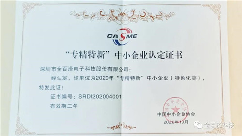 金百泽科技依靠自身优势,勇于创新,抓住机遇,坚持走专精特新发展之路,本次入选中国专精特新中小企业名录,是对金百泽在创新能力、特色化发展等综合实力的有力证明。