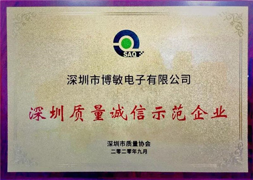 深圳博敏获2020年度“深圳质量诚信示范企业”称号