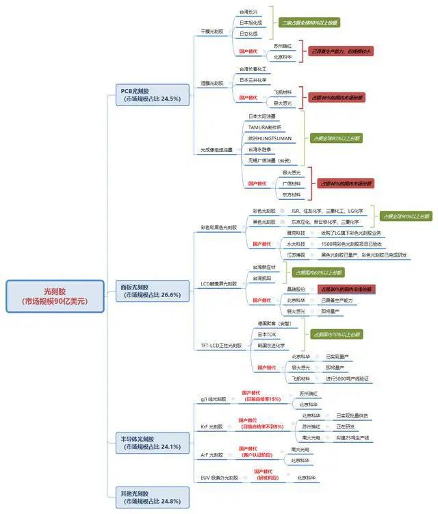 光刻胶3大细分产业链梳理,8家公司是国产替代核心利器