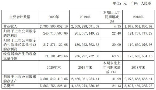 博敏电子2020年实现营业收入27.86亿元,同比增长4.35%,实现净利润2.47亿元,同比增长22.40%。基本每股收益0.55元。