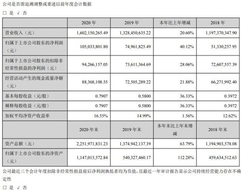 科翔股份2020年实现营业收入16.02亿元,同比增长20.60%,实现归属于上市公司股东的净利润1.05亿元,同比增长40.12%。基本每股收益0.79元。