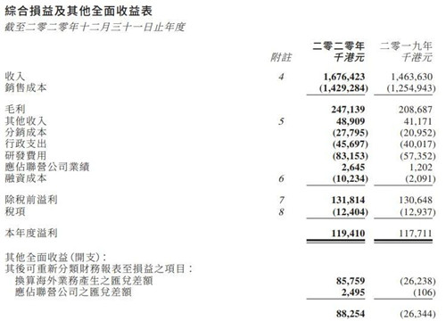 截至2020年12月31日止年度,本公司及其附属公司(统称「本集团」)录得之营业额约16.76亿港元,较去年之营业额增加约14.54%。本年度本公司拥有人应占溢利约为1.19亿港元,去年本公司拥有人应占溢利约1.18亿港元。报告期内,本集团之每股盈利约为7.79港仙。