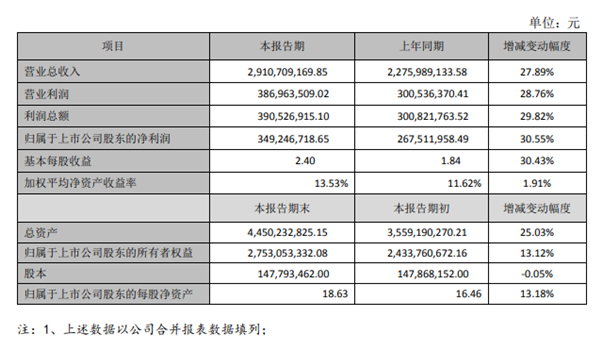 4月6日,奥士康科技股份有限公司2020年度业绩快报发布,快报内容显示,公司2020年实现营业总收入约29.10亿元,较上年同期增长27.89%;归属于上市公司股东的净利润约3.49亿元,较上年同期增长30.55%;营业利润约3.87亿元,较上年同期增长28.76%;利润总额约3.90亿元,较上年同期增长29.82%。